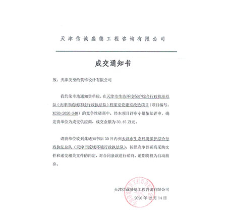 2022年4月美至约装饰被天津市建筑装饰行业协会评为“天津市优秀建筑装饰企业”